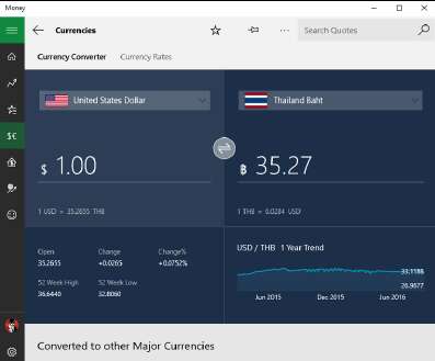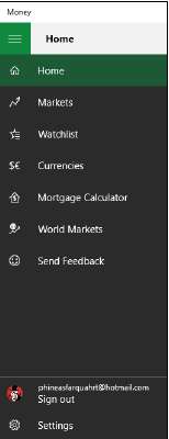 • Нажмите на значок гамбургера в левом верхнем углу. Windows Money показывают вам панель навигации, которая приведёт вас к важным деталям.