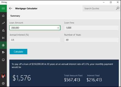 • Щёлкните значок гамбургера и выберите «Калькулятор ипотеки». Вы увидите базовый калькулятор платежей по ипотеке. Это простая альтернатива поиску ипотечного калькулятора в Интернете.