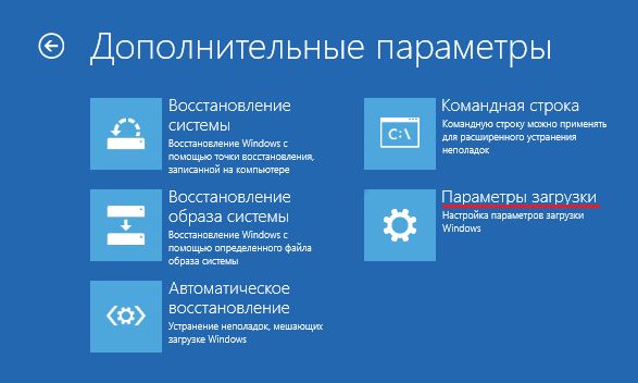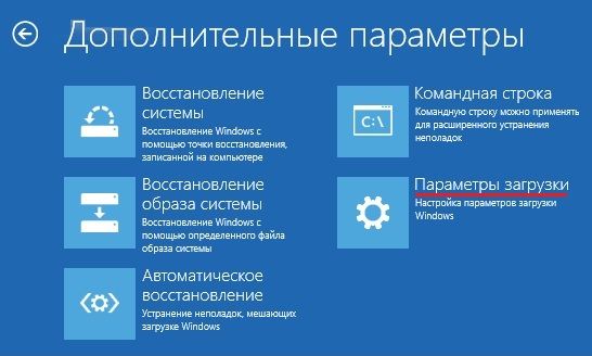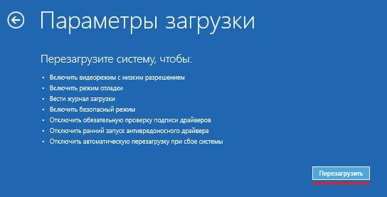 Здесь нужно выбрать "Параметры загрузки", далее выберите "Перезагрузить"