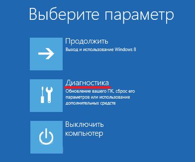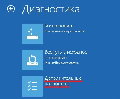 В открывшемся окне "Диагностика" выберите пункт "Дополнительные параметры"