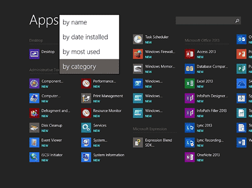 • Список приложений рабочего стола перед видом приложений отсортированным по категориям. Показывает программы вашего рабочего стола перед видом все приложения. Для этого, вам также нужно изменить порядок представления всех приложений, вы можете это сделать, нажав по ссылке в верхнем левом углу экрана.