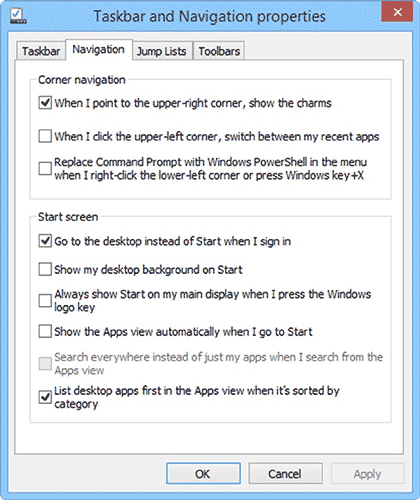 Запуск Windows 8.1 непосредственно на рабочий стол. То, что изменилось с первого релиза Windows 8.1, это добавление в свойствах панели задач вкладки «Навигация». Если вы серьезный пользователь ПК, здесь вы найдете для себя много умных и мощных элементов управления.